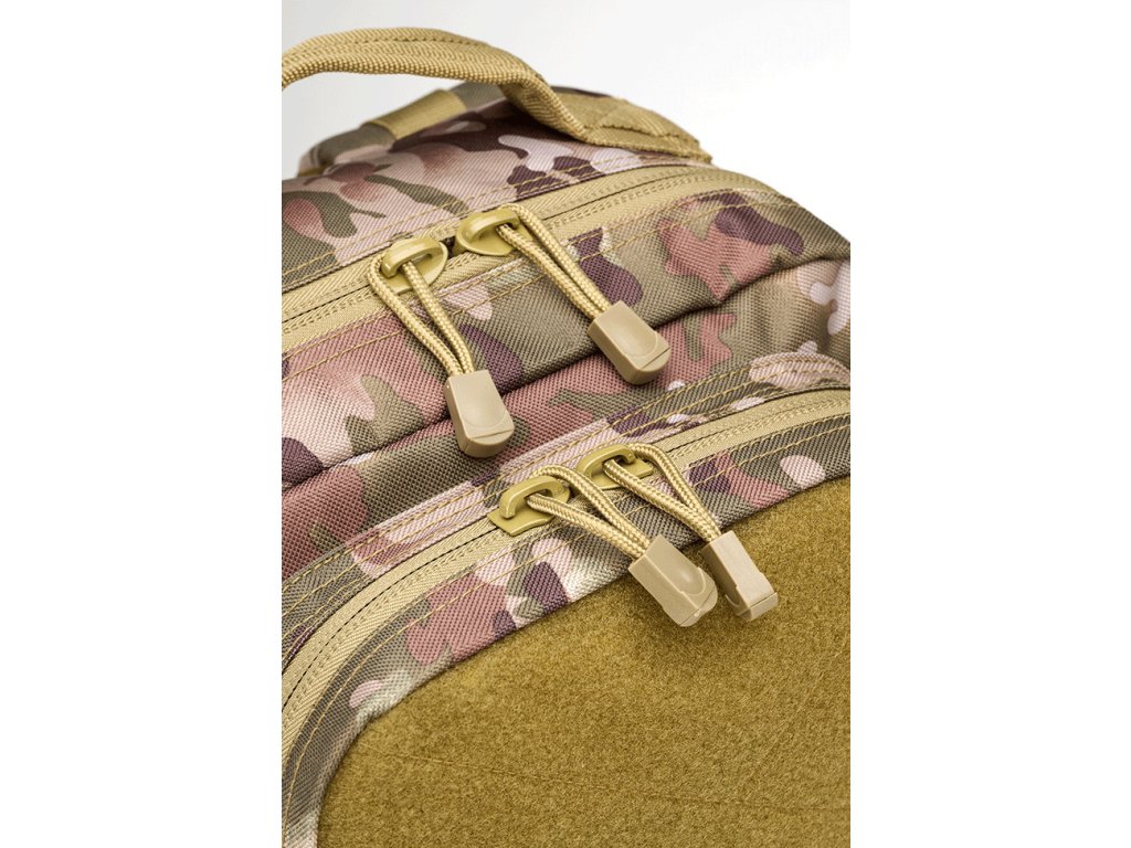 Batoh je vybavený systémom MOLLE (Modular Lightweight Load-carrying Equipment), ktorý umožňuje pripevniť ďalšie vrecká MOLLE, vrecká na drobnosti alebo iné príslušenstvo. Ramenné popruhy sú polstrované a nastaviteľné, čo zaručuje pohodlné nosenie aj na dlhších cestách.
